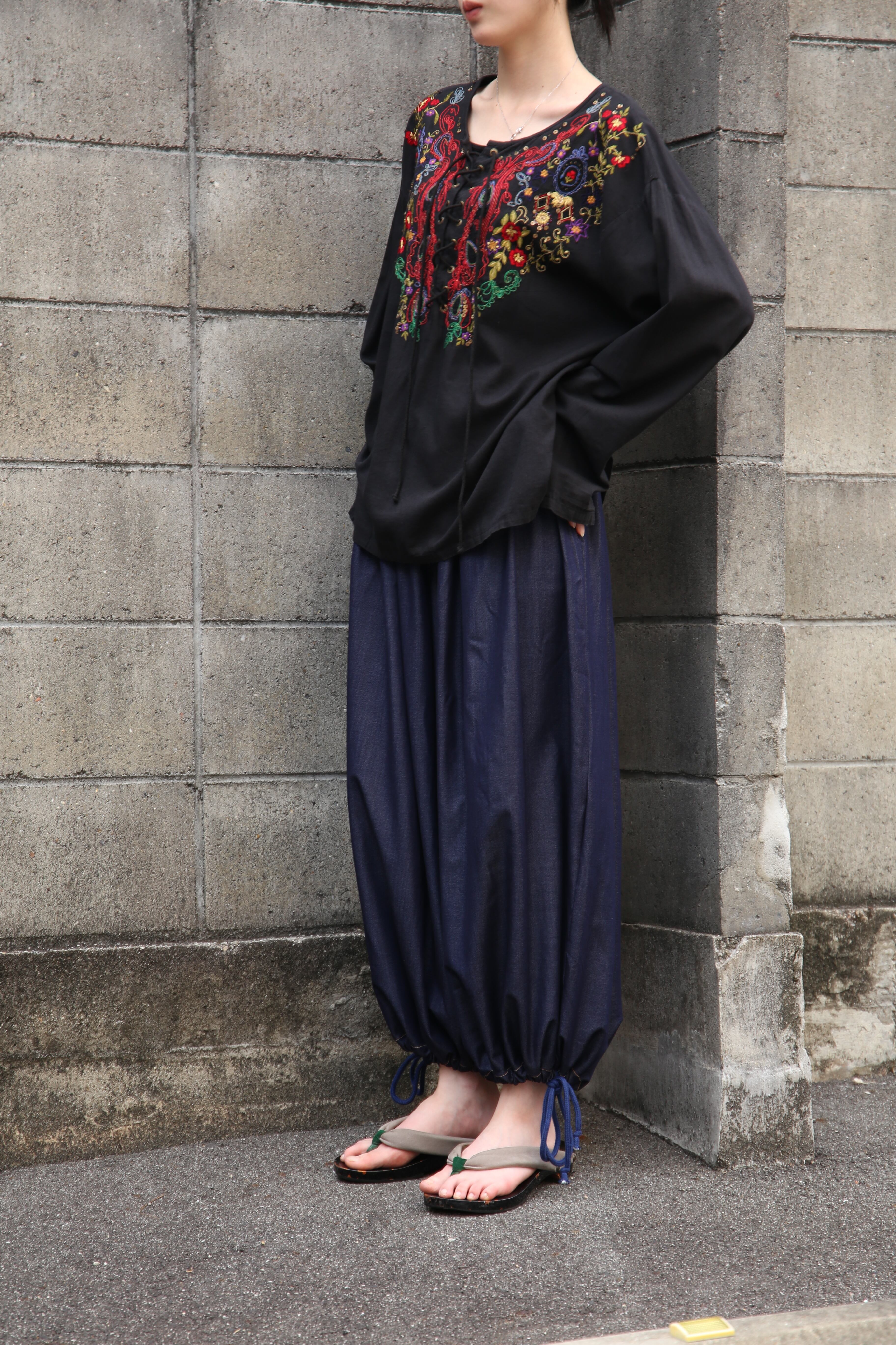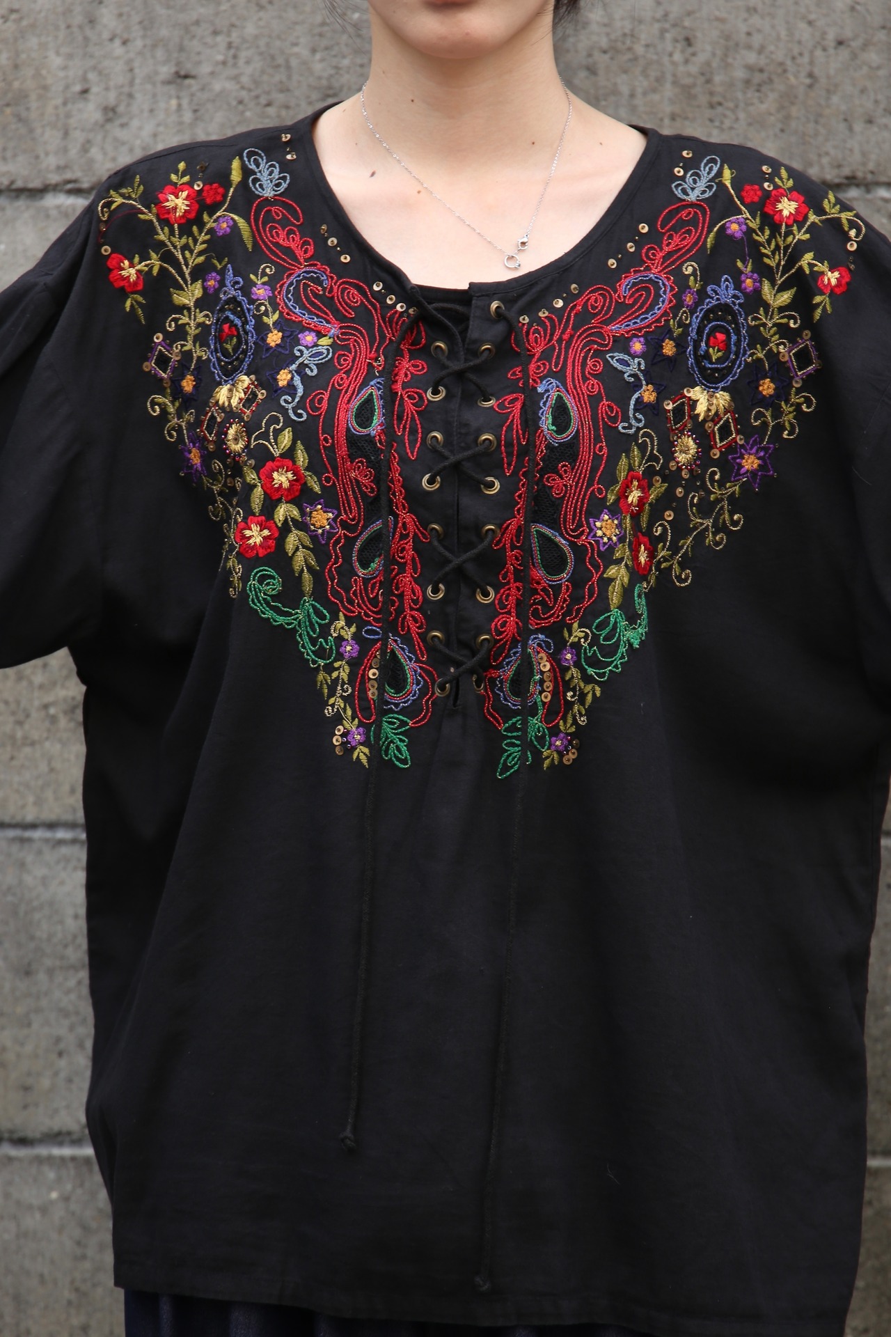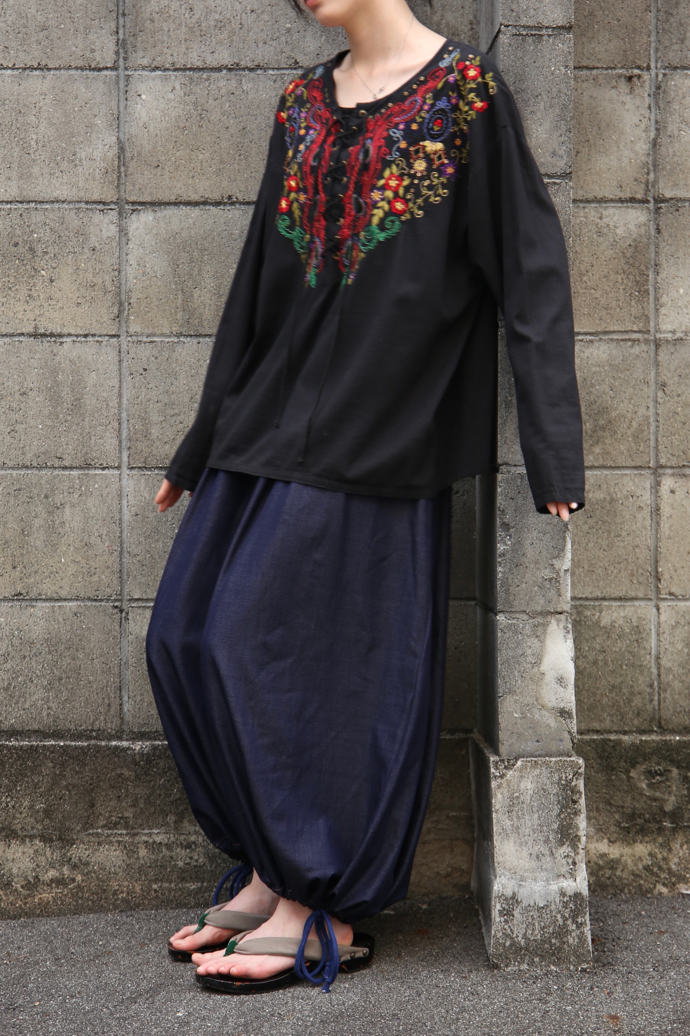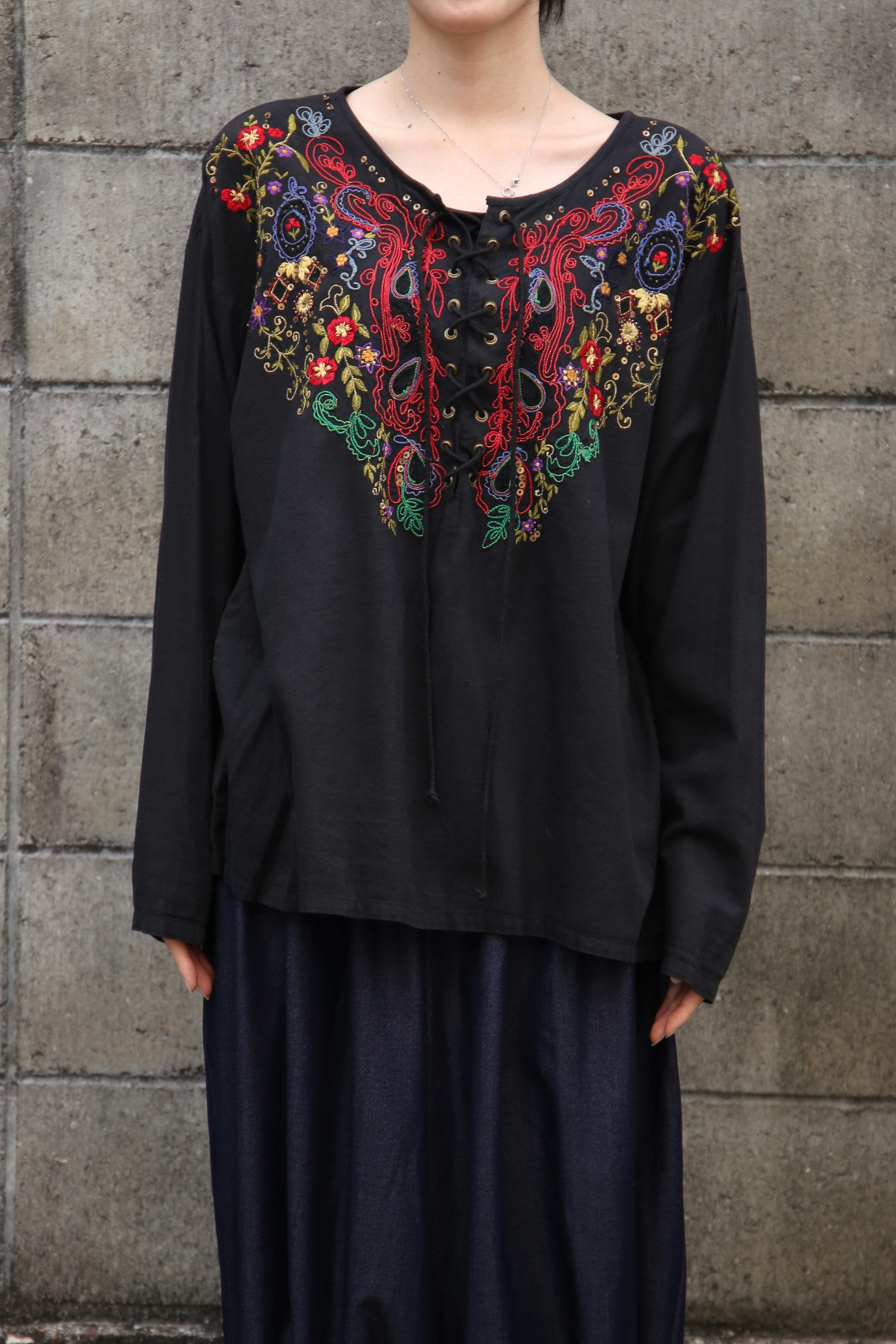 embroidery lace-up pullover