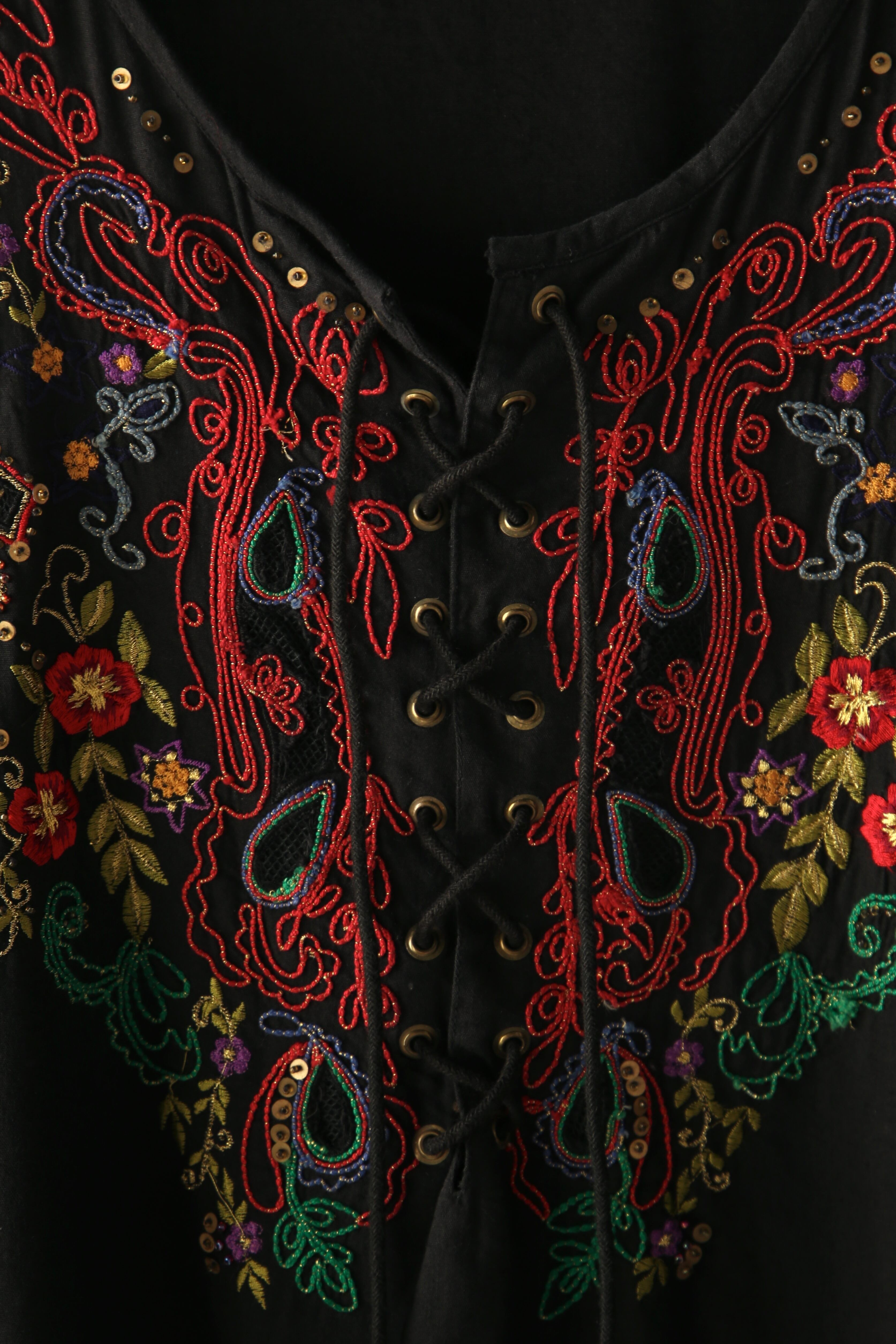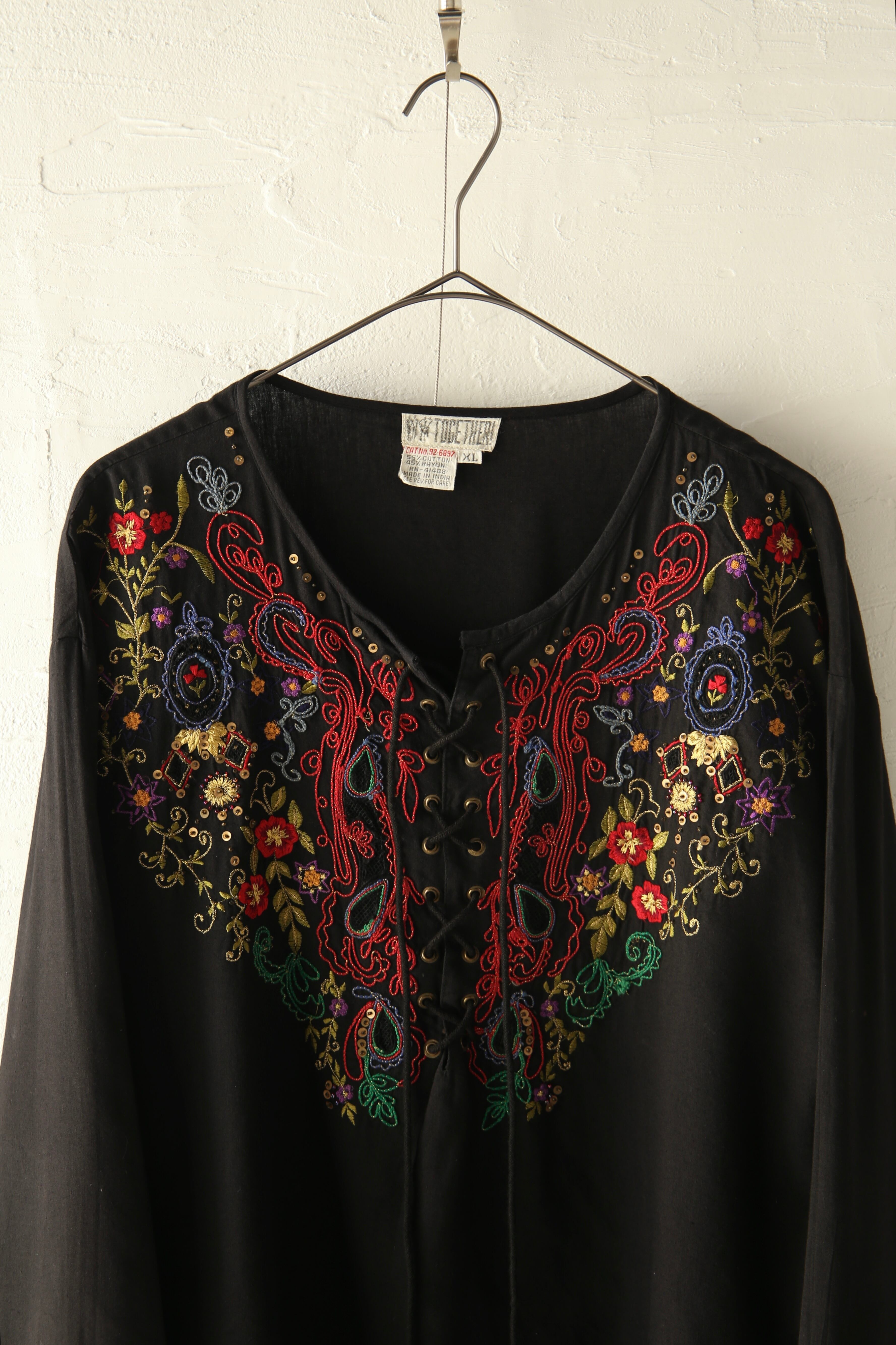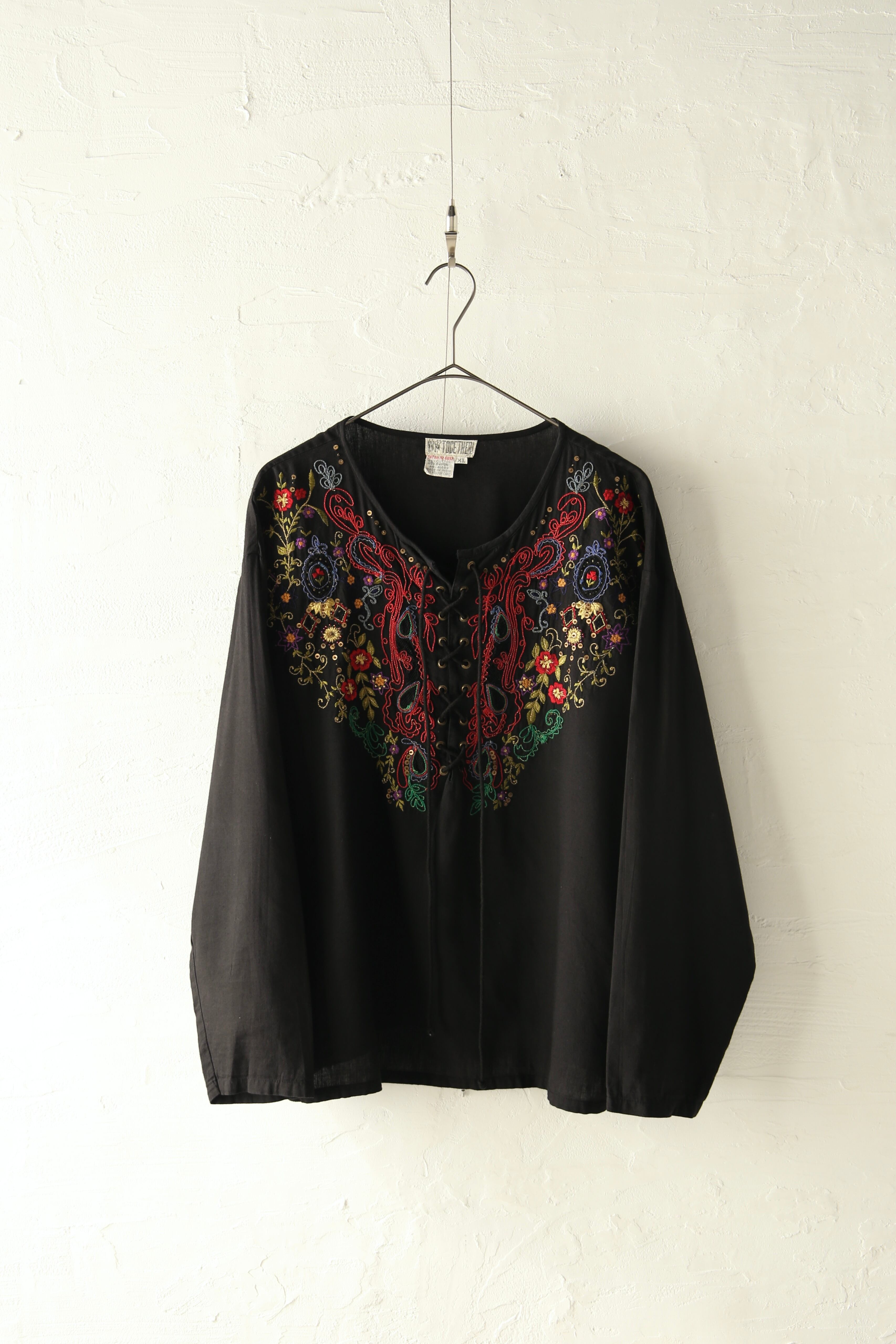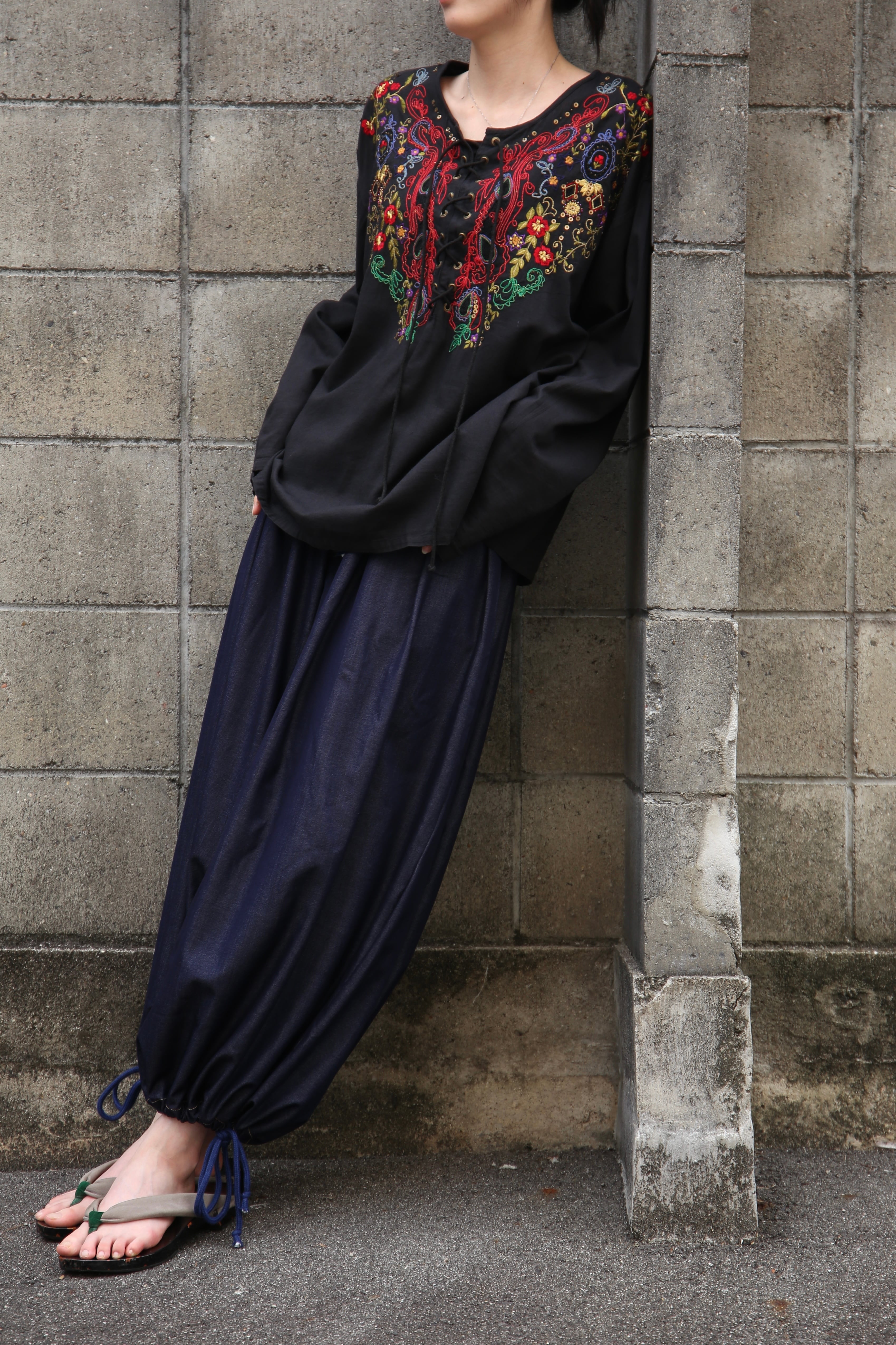 embroidery lace-up pullover