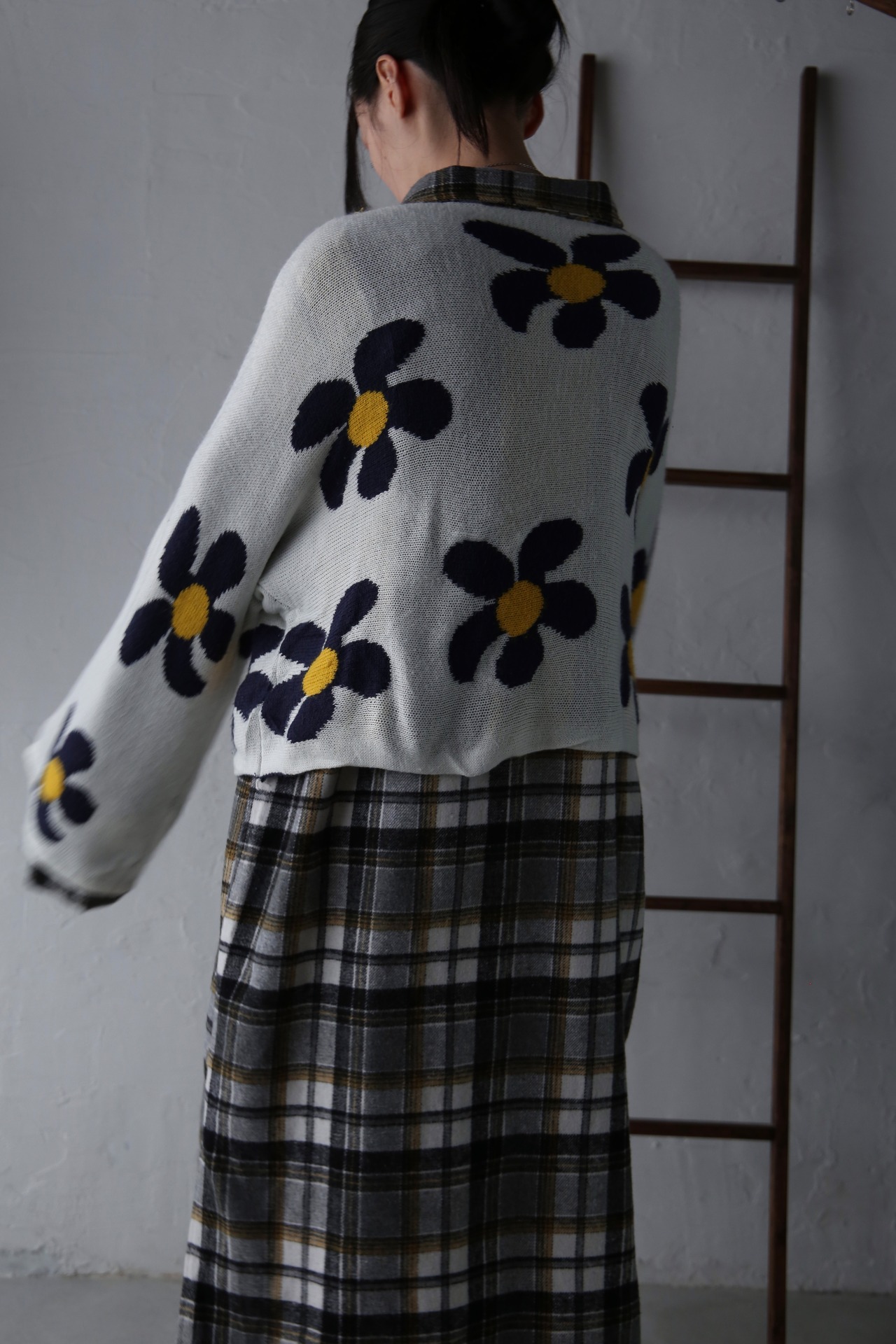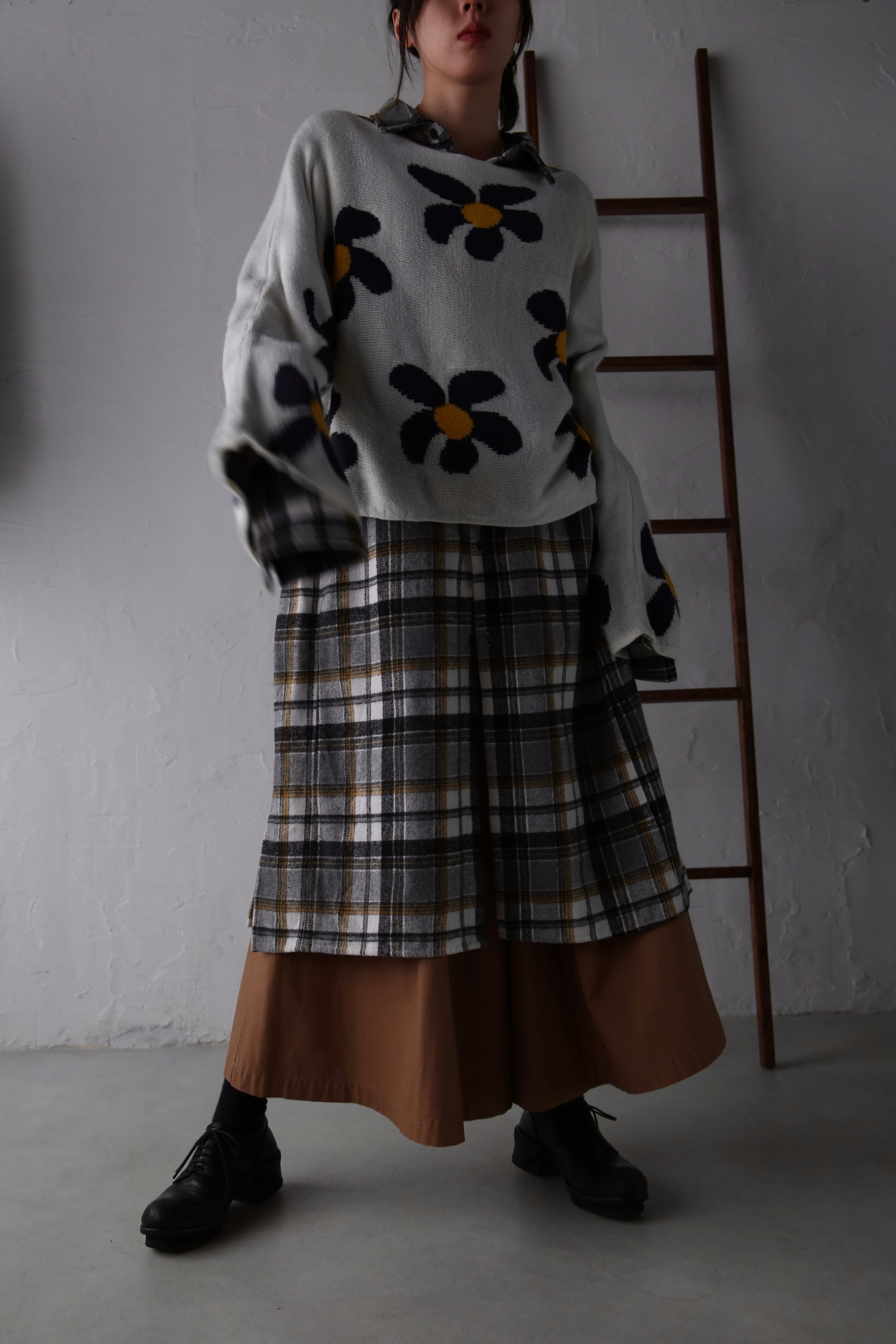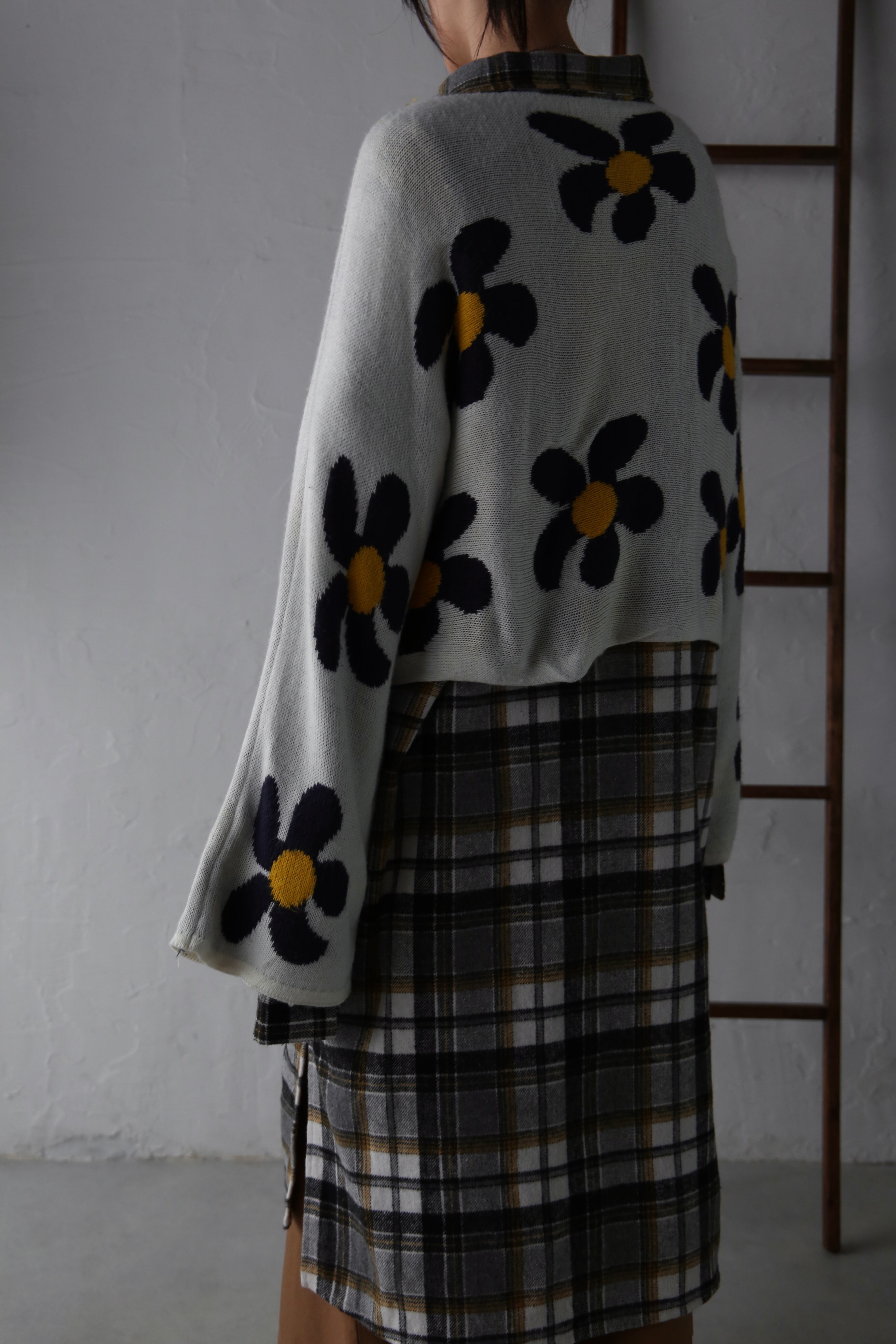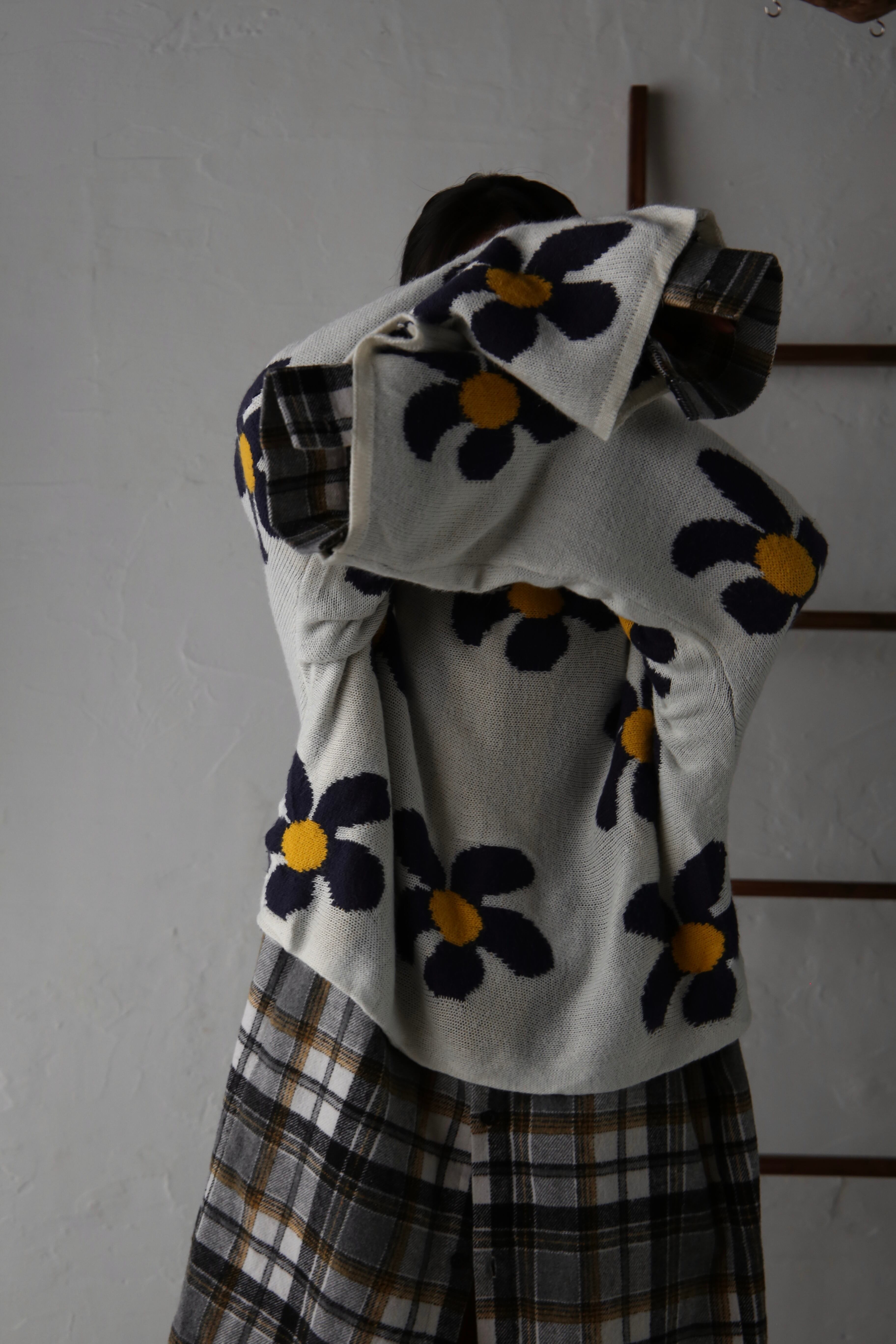 花柄の短丈ニット。